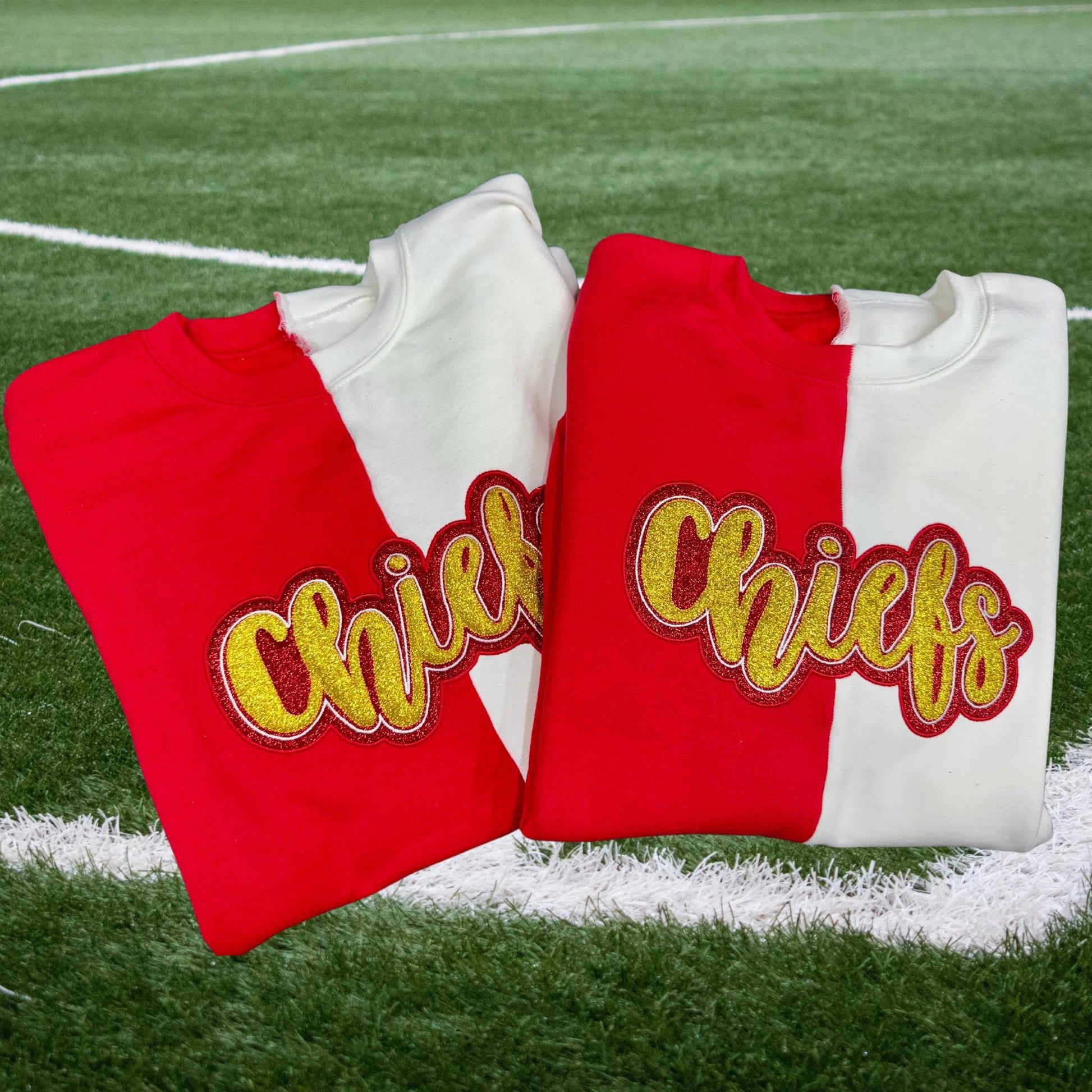 This Split Color Gameday Sweater boasts a unique style with its split color design and embroidered HTV. Made for comfort and warmth, this sweater is perfect for gameday or any casual occasion. Show off your team spirit in style with this must-have sweater.